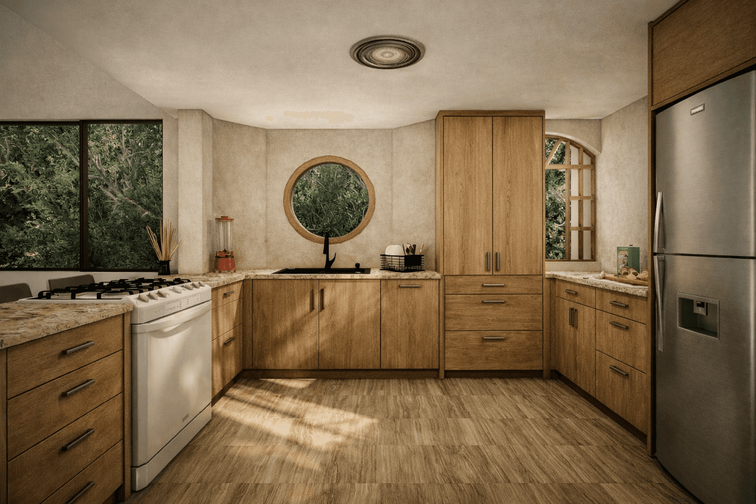 El proyecto integra áreas sociales, cocina, baño y espacios flexibles, priorizando funcionalidad, bajo mantenimiento y confort térmico, en respuesta a un presupuesto ajustado y a las condiciones del contexto.